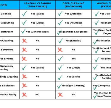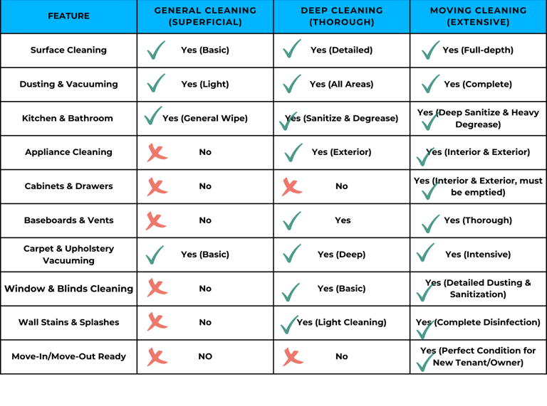 General Cleaning vs. Deep Cleaning vs. Moving Cleaning